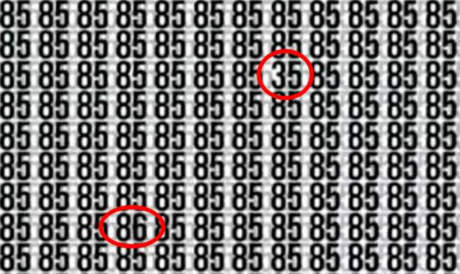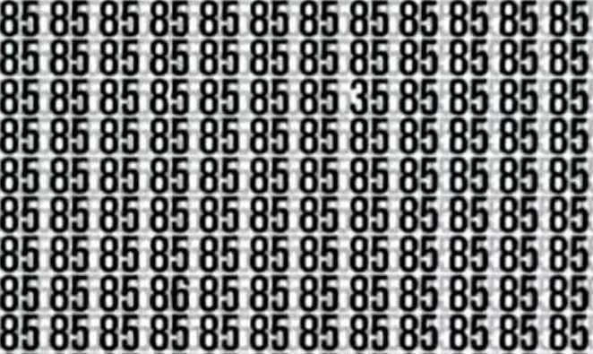 I den næste gåde skal du finde to skjulte tal – 86 og 35 – blandt et stort antal tal 85, skriver jagranjosh. Det bliver ikke let at se, hvor de tal, der adskiller sig fra alle de andre, er gemt.