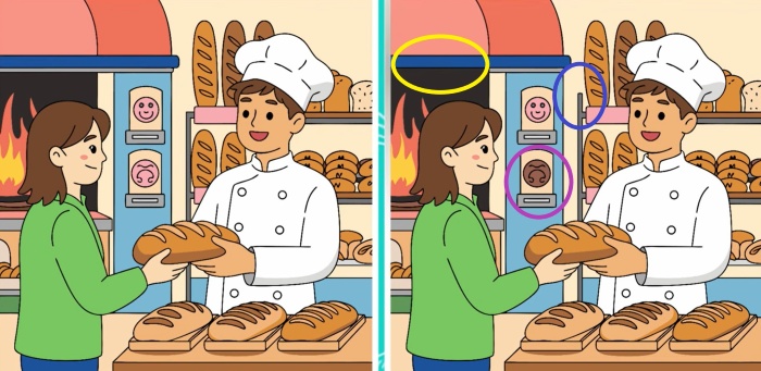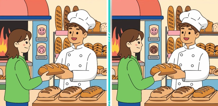 Er du klar til at teste dig selv? Foran dig er der to billeder af en bager og et brød. Ved første øjekast ser de helt ens ud, men kunstneren har skjult tre små forskelle. Kan du finde dem på bare 25 sekunder? Tag dig god tid, og test din opmærksomhed.