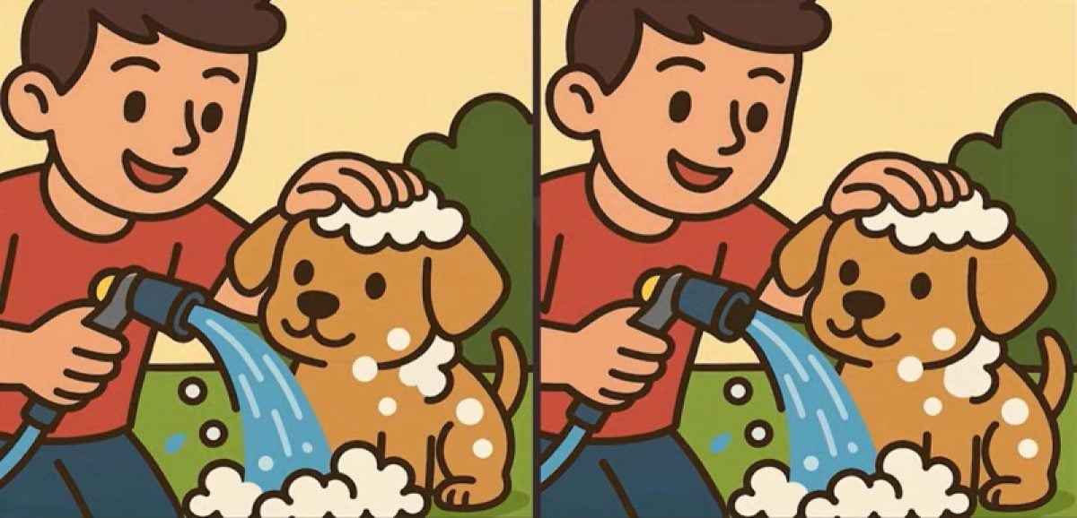 Er du klar til at teste din opmærksomhed? Se på disse to billeder af en dreng, der bader sin hund. Umiddelbart ser det ud, som om billederne er helt ens, men der er faktisk tre små forskelle mellem dem.