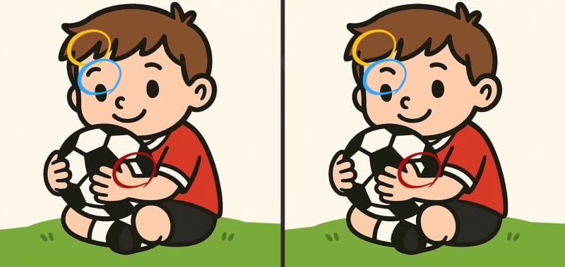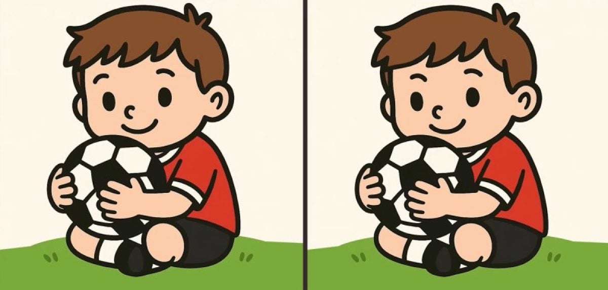 Foran dig er der to billeder med en dreng og en fodbold. Der er tre forskelle gemt i dem, og din opgave er at finde dem på bare 49 sekunder.