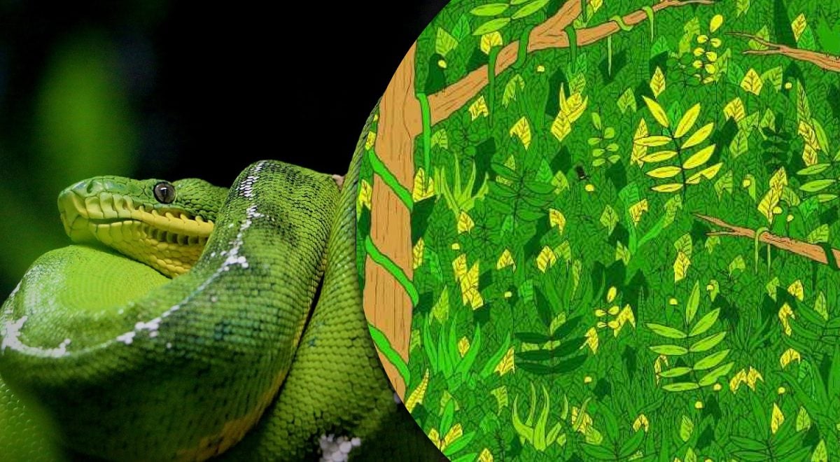 Opgaven virker enkel, men den er faktisk svær, fordi slangen er camoufleret i det tætte løv.