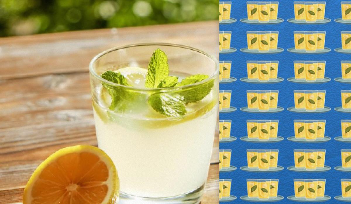Glasset med mindre limonade i var nederst i billedet / collage af Moje