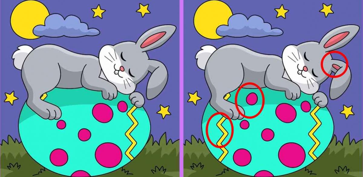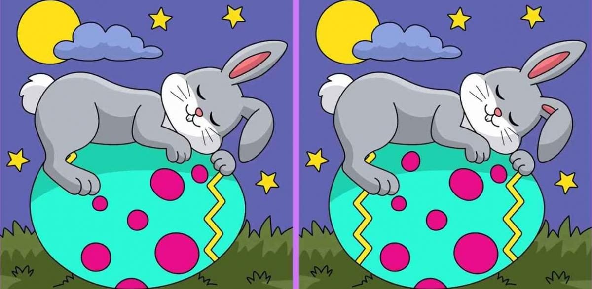 Er du klar til at teste dig selv? Her er to billeder: De viser en kanin, der sover på et påskeæg. I første omgang tror du måske, at de er helt identiske, men det er de ikke – der er tre forskelle mellem dem.