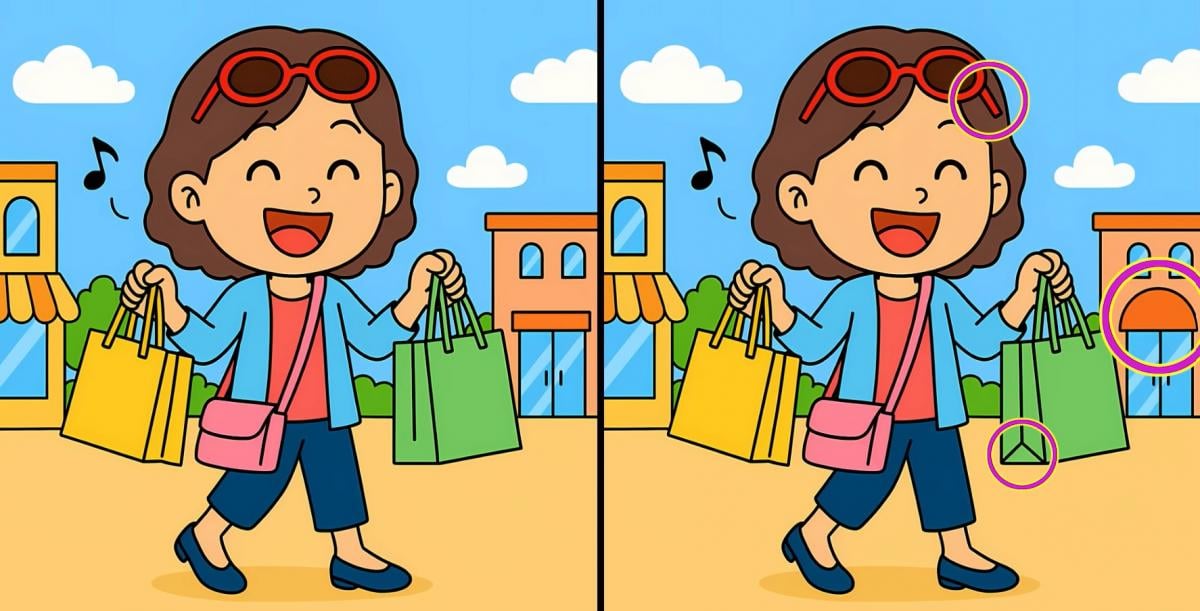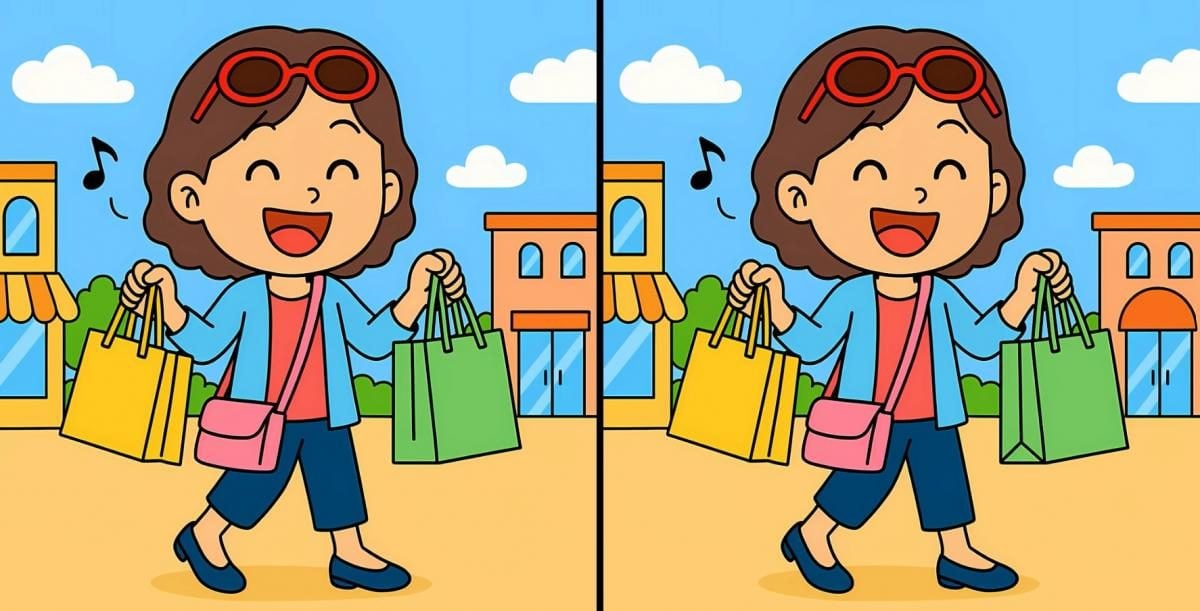 Er du klar til at teste din opmærksomhed? Her er to billeder af en pige på indkøb. De ser identiske ud, men det er bare et trick for øjet – der er tre skjulte forskelle mellem dem.