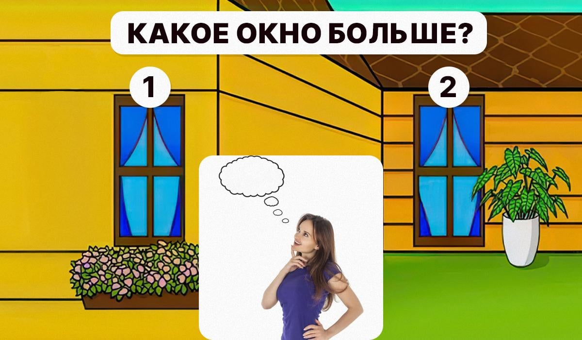 Fortæl mig nu det rigtige svar. Det rigtige svar er, at vinduerne er de samme. Forskellen i opfattelsen af vinduesstørrelser skyldtes perspektivets “trick”.