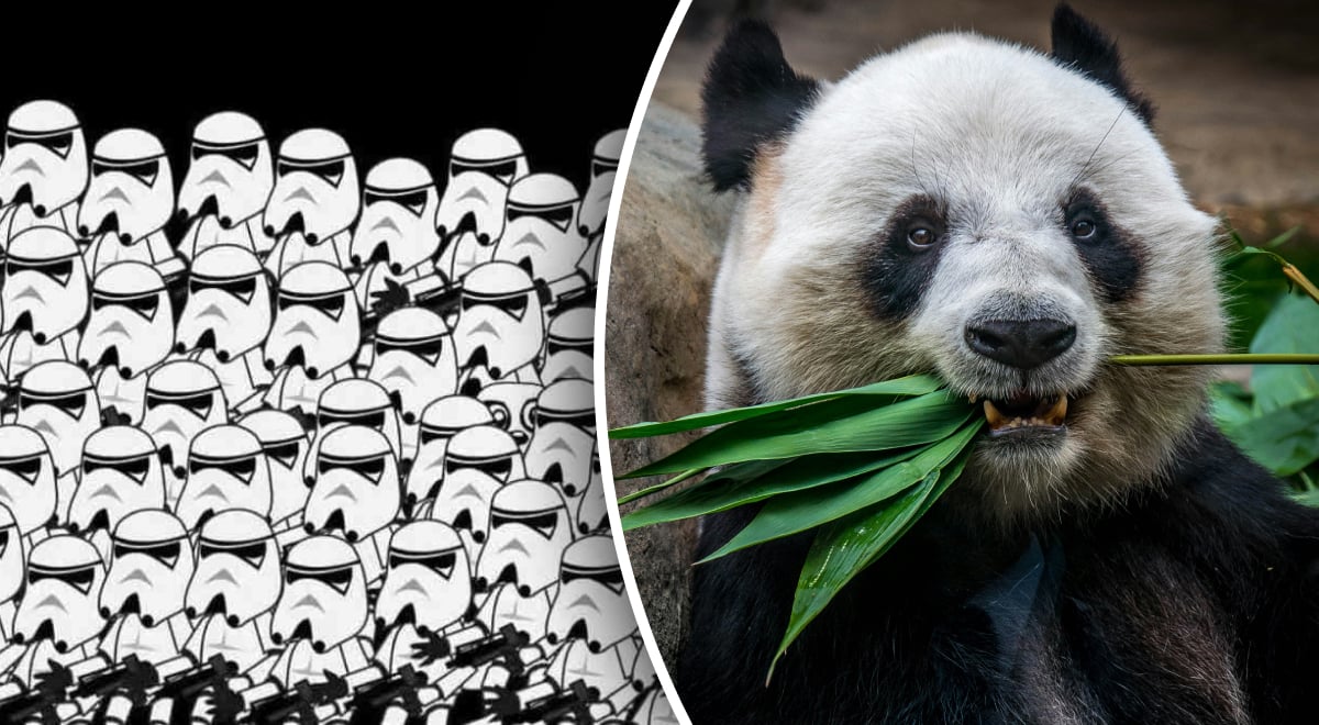 Det tager 5 sekunder at finde en panda / collage: Glavred, foto: jagranjosh, unsplash.com