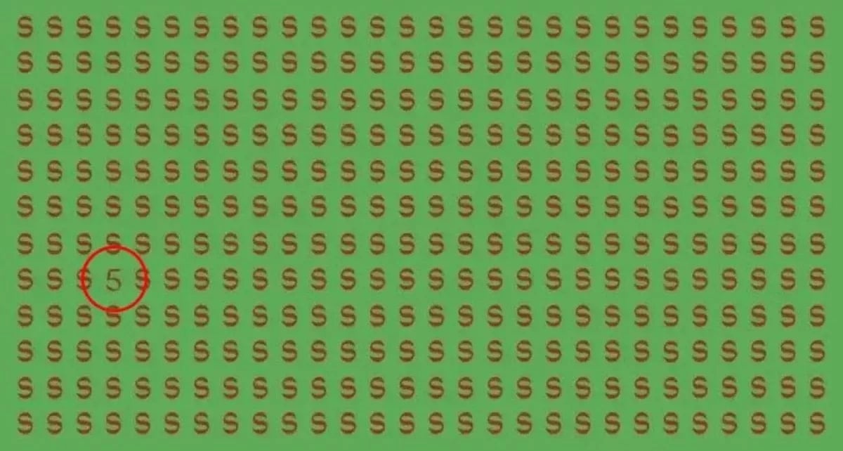 Når man ser på billedet, ser det røde bogstav “S” ud til at fylde hele det rektangulære felt, men nogle vil være i stand til at se det mærkelige tal i løbet af få sekunder.