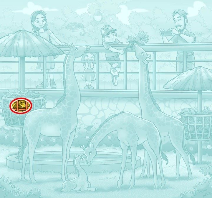 Som JagranJosh fortæller historien, forestiller illusionen en zoologisk have. En mand klikker på billeder af giraffer. Kvinden og børnene er forbløffede over at se dyrene. Drengen fodrer giraffen med planter. Der er også en abe, som gemmer sig et sted i billedet. Prøv at finde aben så hurtigt som muligt, for du har kun 9 sekunder til at fuldføre denne opgave.