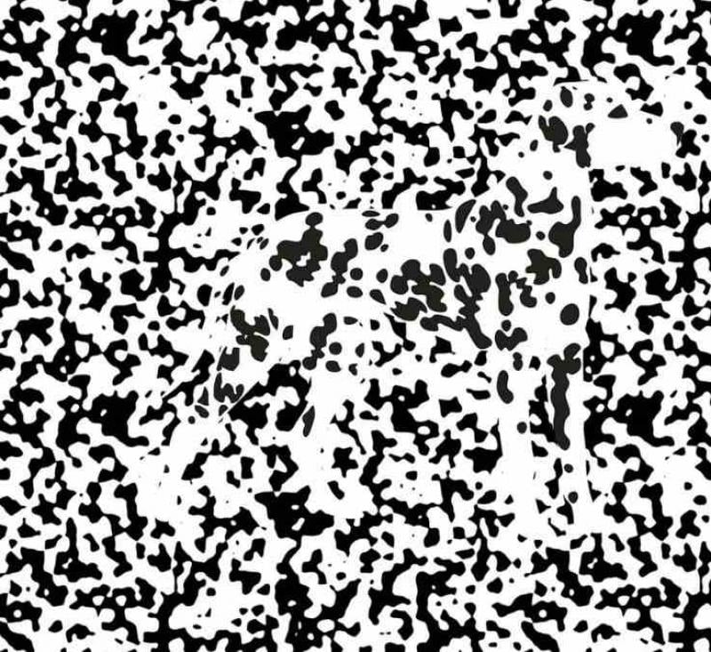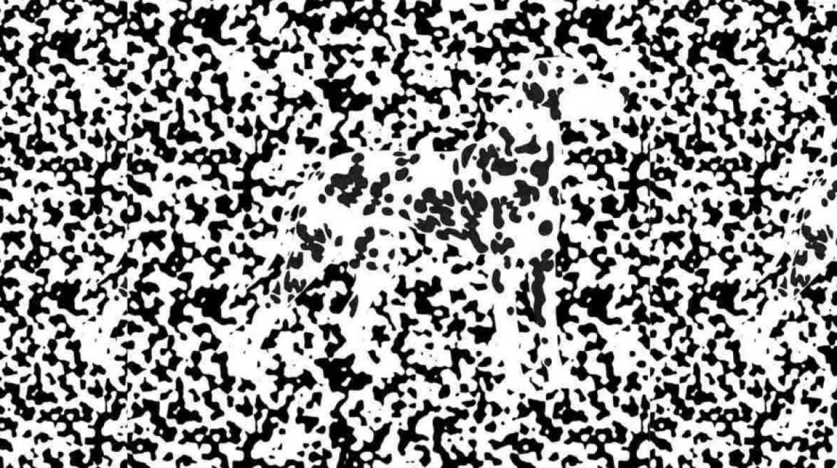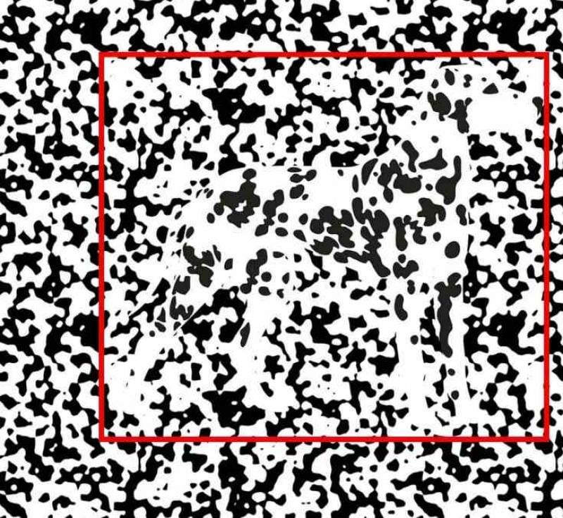 På billedet – et stort antal sorte og hvide prikker. Du skal kigge på dem og finde hunden.