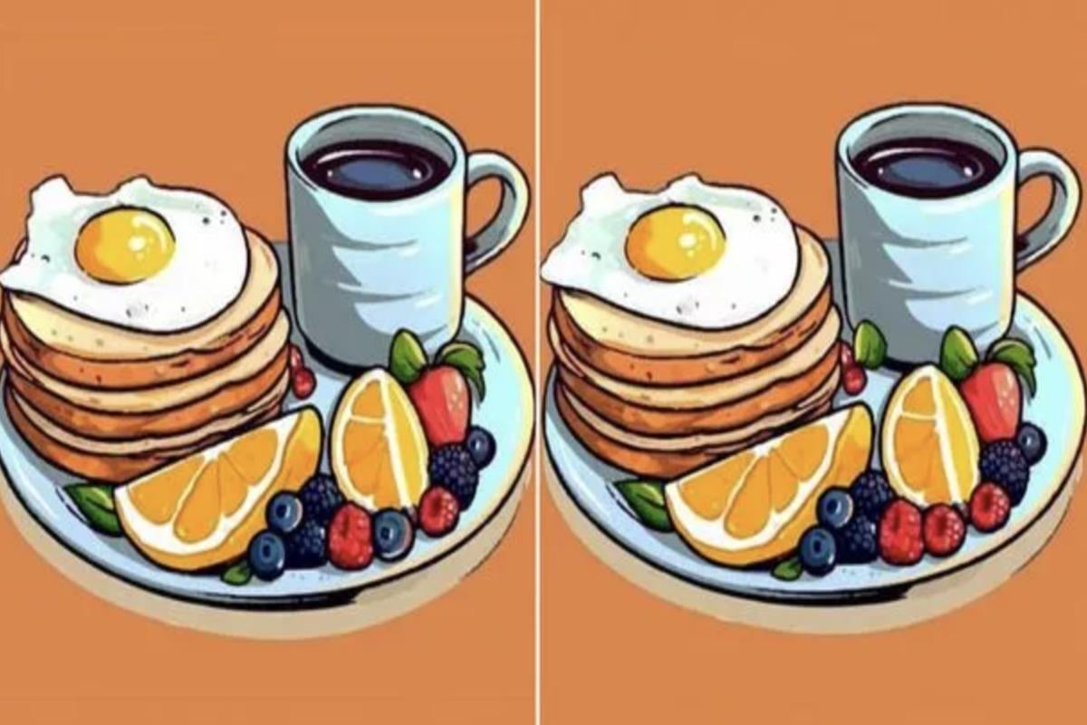 I et nyt puzzlespil, som får nogle mennesker til at bryde deres hjerner, skal du finde tre forskelle mellem to tallerkener med morgenmad, som indeholder pandekager, æg og frugt. Ved siden af står et krus kaffe til at skylle det hele ned med.