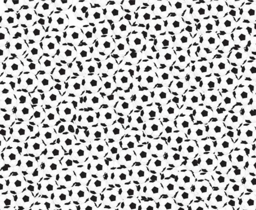 Det bliver ikke nemt at se præcis, hvor pandaen gemmer sig blandt fodboldene.