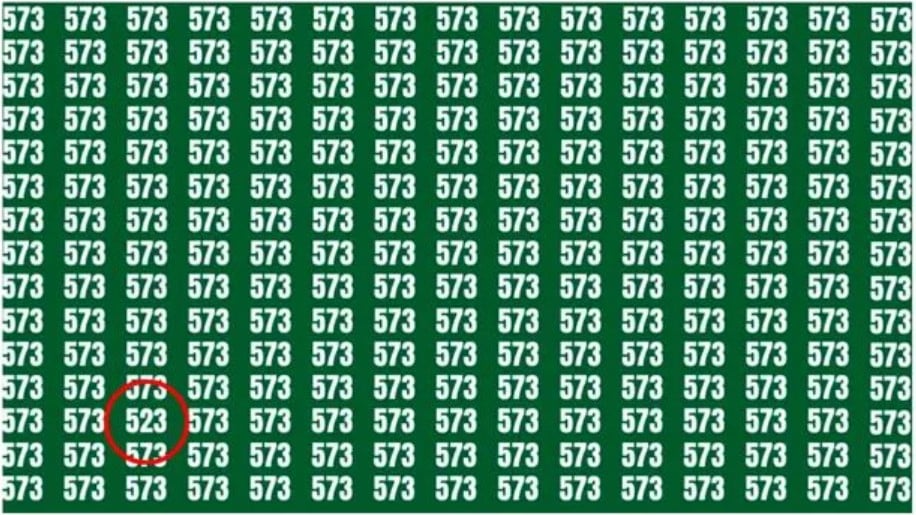 Puslespillet beder dig om at finde det skjulte tal 523 i et hav af 573 på bare 18 sekunder – hvilket er en meget stram tidsgrænse.